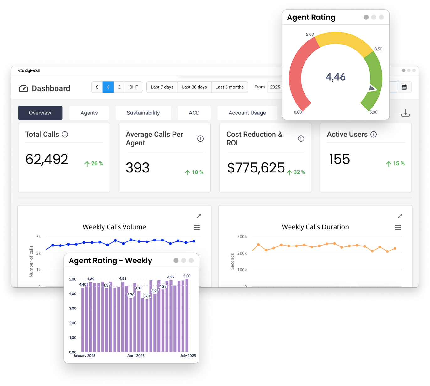 Evaluate SightCall’s impact on field service operations with dedicated reporting dashboards. Gain real-time insights into operational efficiency, sustainability, customer experience, and service delivery improvements.